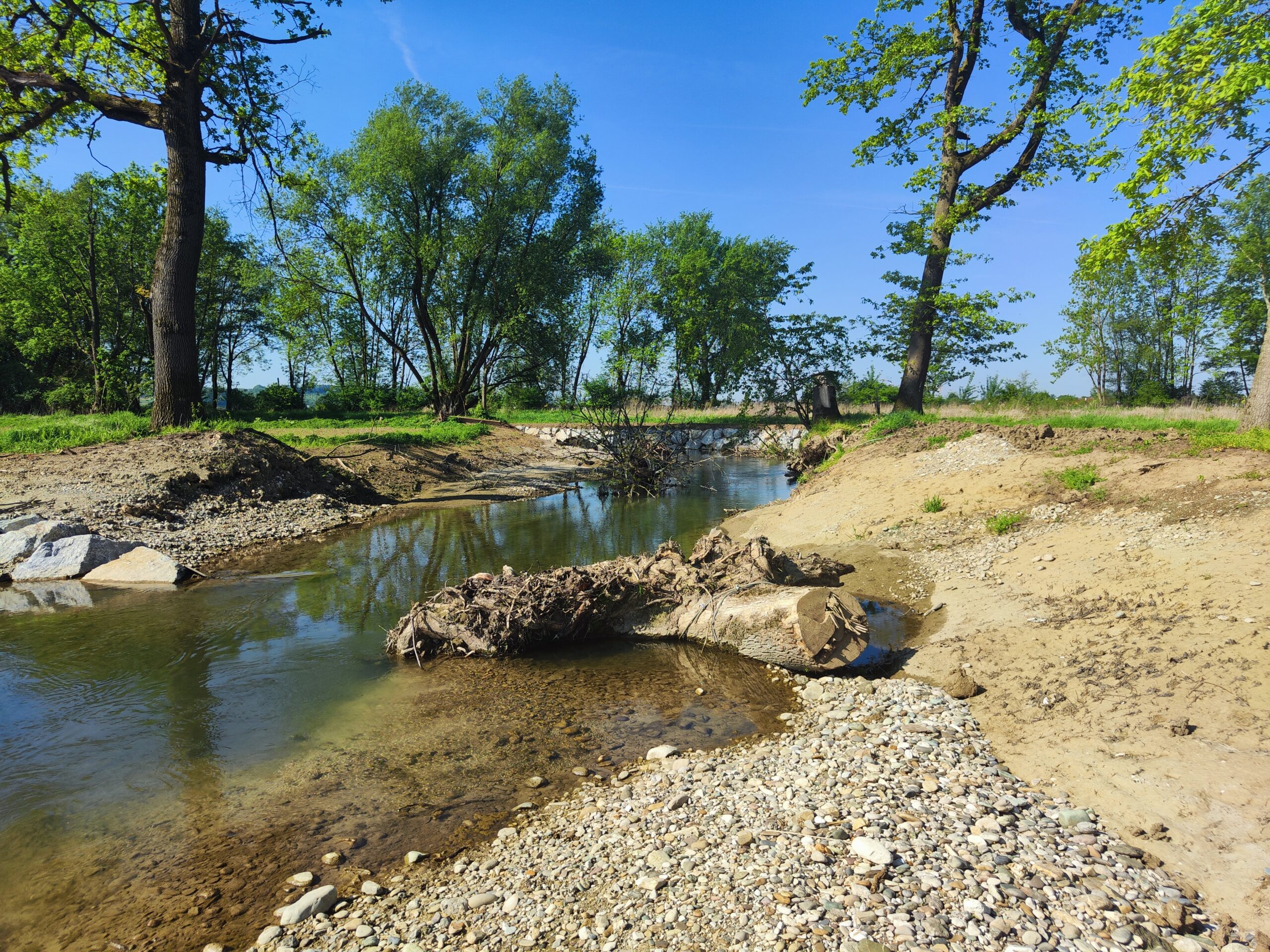 Durch den Einbau von Strukturelementen aus Totholz und Steinen konnten jene Bäume und Wurzelstöcke wiederverwendet werden, die zuvor im Zuge der Bauarbeiten gerodet wurden. Diese Elemente verändern den Wasserfluss: Sie schaffen unterschiedliche Fließgeschwindigkeiten und Wassertiefen im Bach und fördern so einen vielfältigen Lebensraum für Fische und andere Gewässerlebewesen, der Einstands- und Versteckmöglichkeiten bietet.